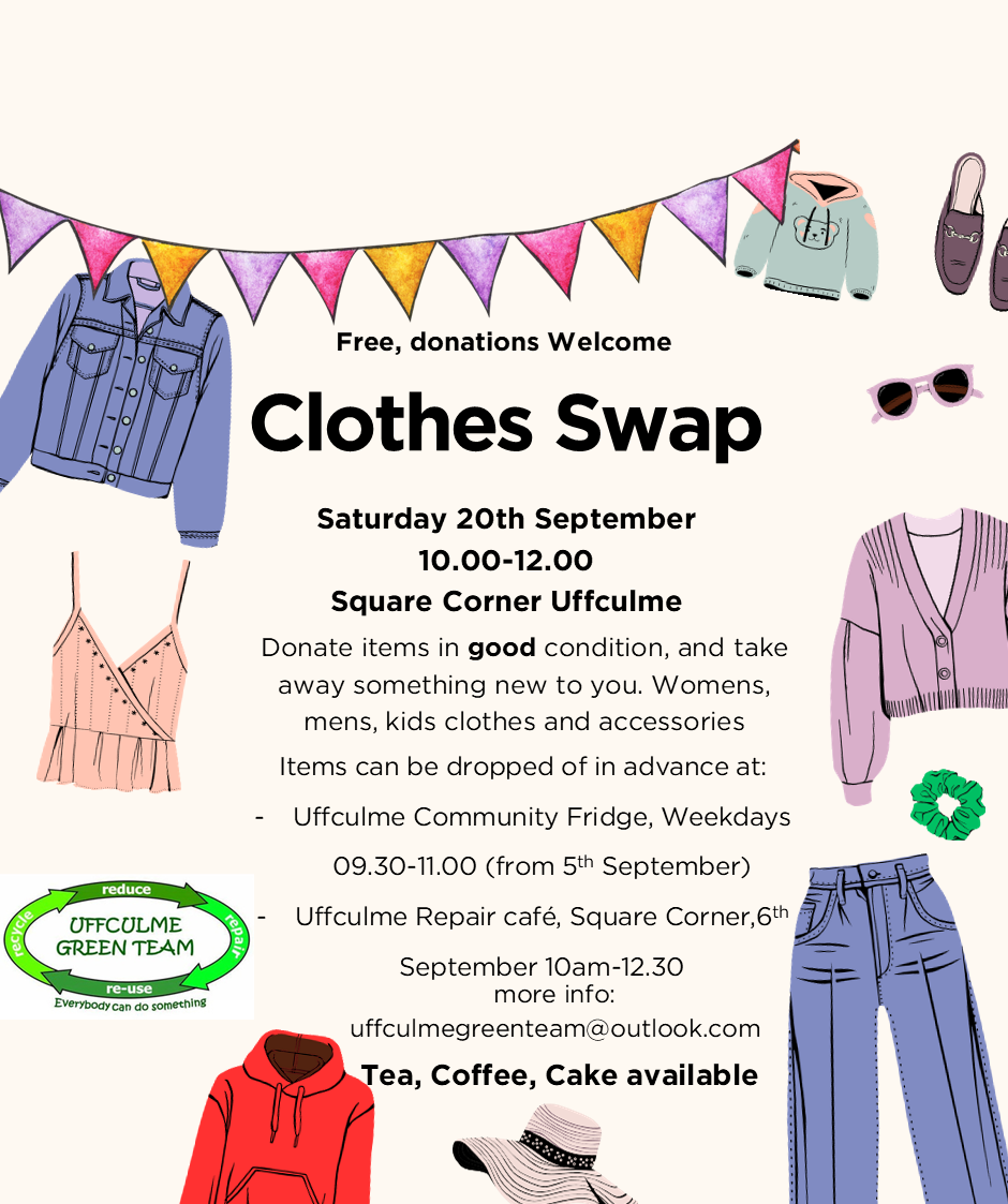 Bring along your good condition, clean clothes (adults and childrens – including shoes and accessories) you no longer need and take away something new to you.